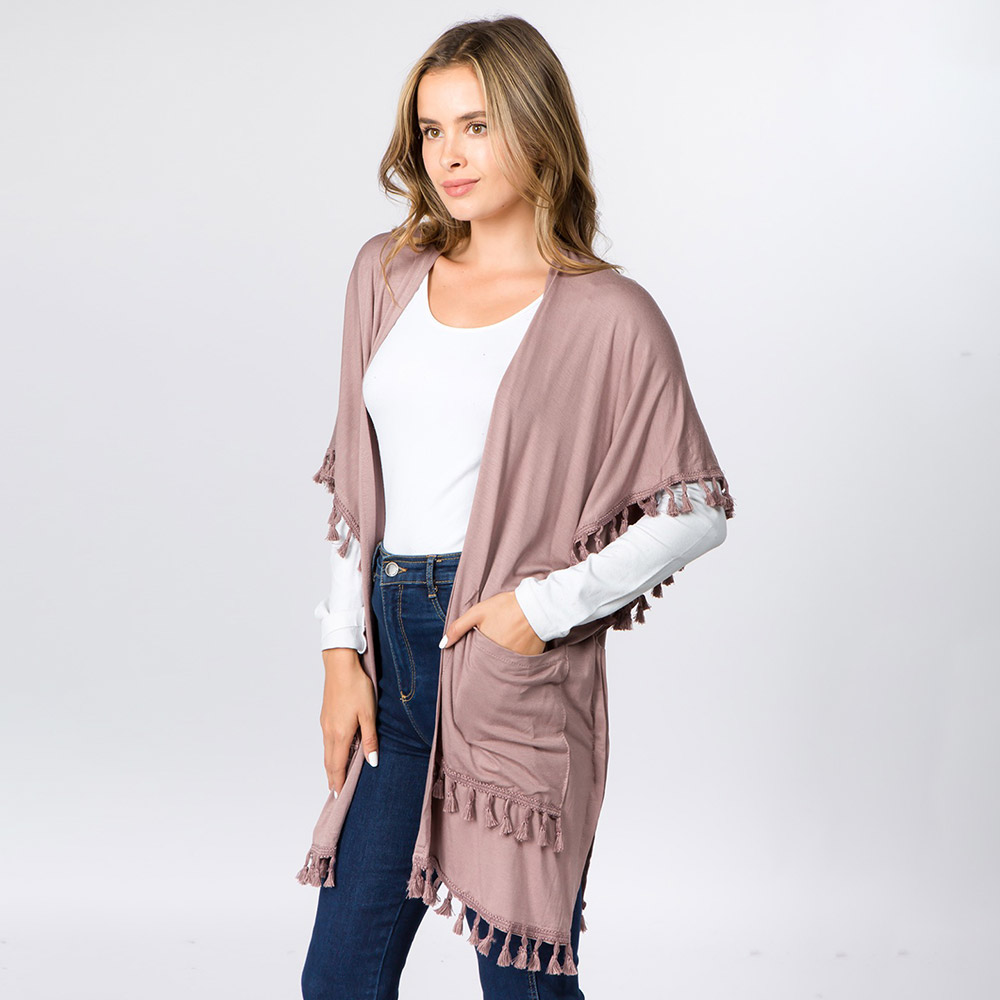 Lightweight Tassel Trim Open Front Kimono Cardigan Lightweight Tassel Trim Open Front Kimono Cardigan Lightweight Tassel Trim Open Front Kimono Cardigan