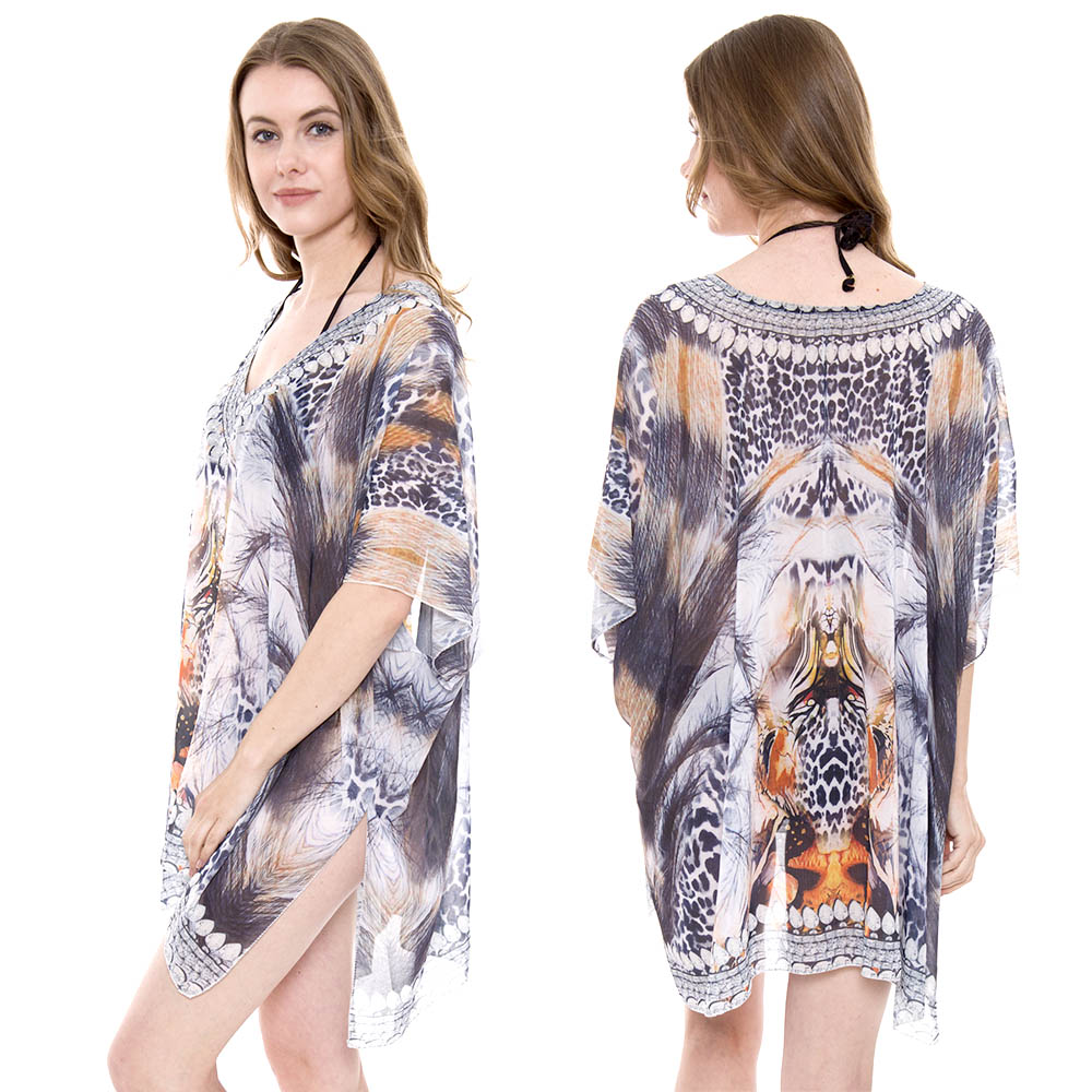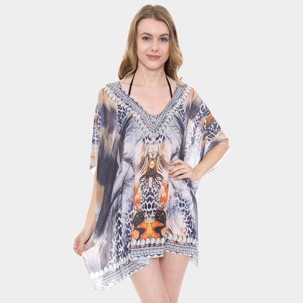 Mixed Print Rhinestone Studded Topper Cover Up Poncho