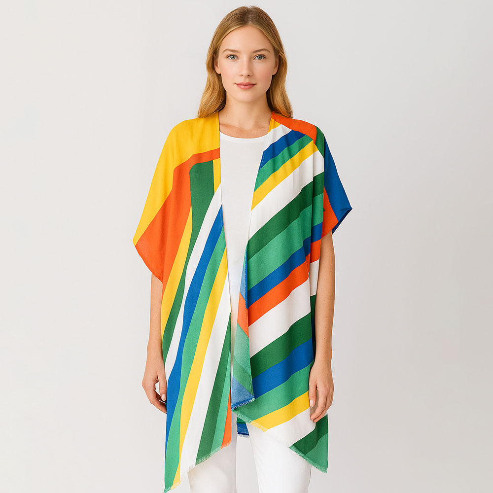 Multi Color Abstract Stripe Pattern Open Front Kimono Poncho