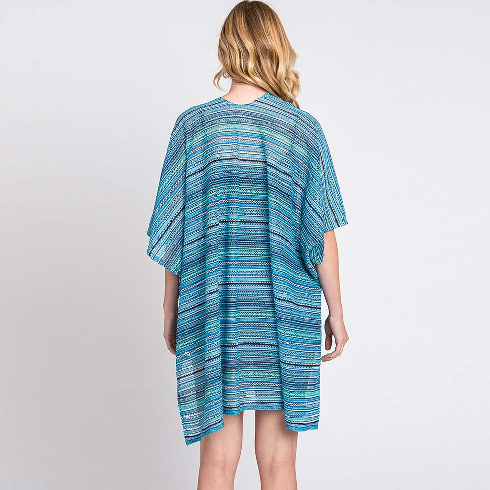Multi Color Stripe Crochet Open Front Cover-Up Kimono Poncho