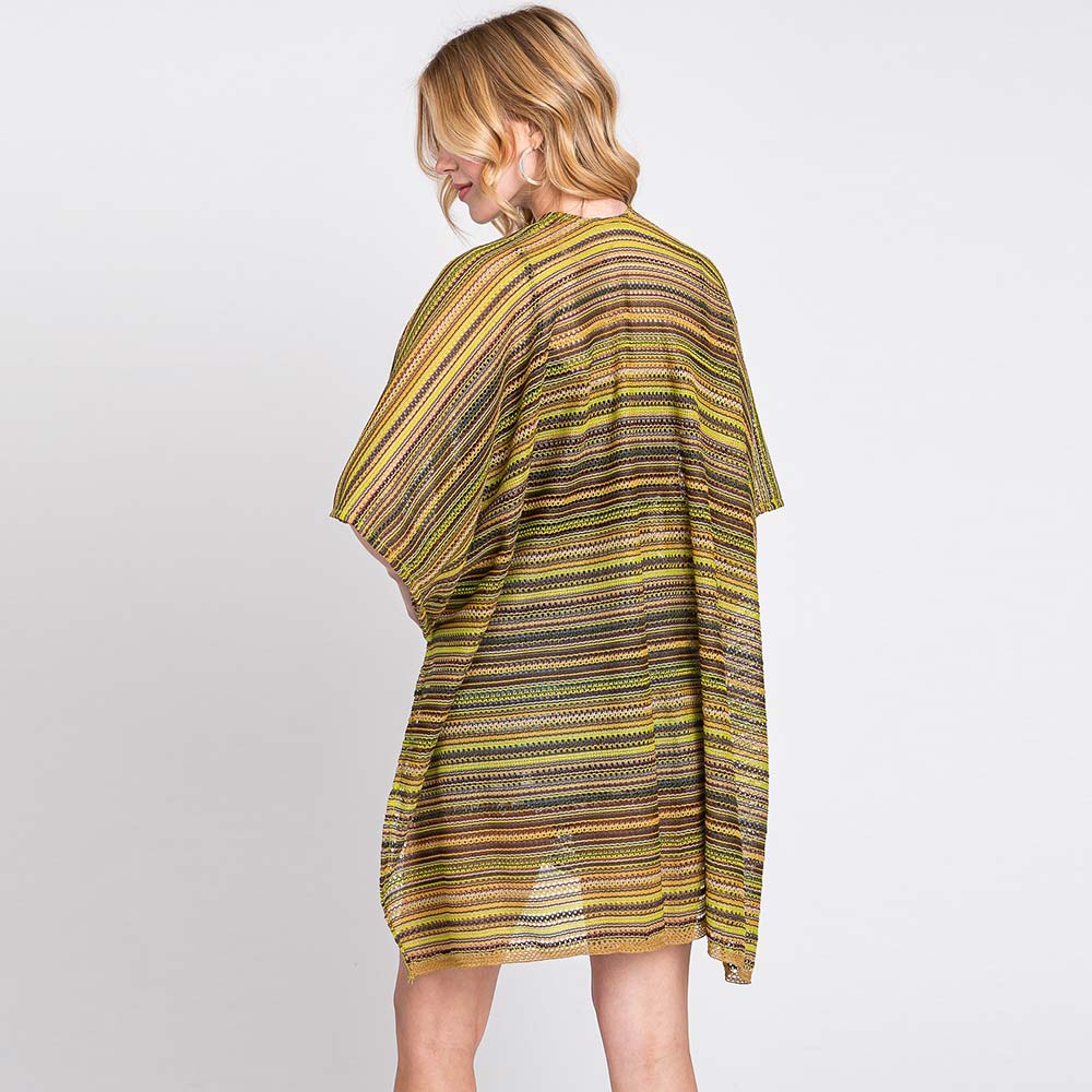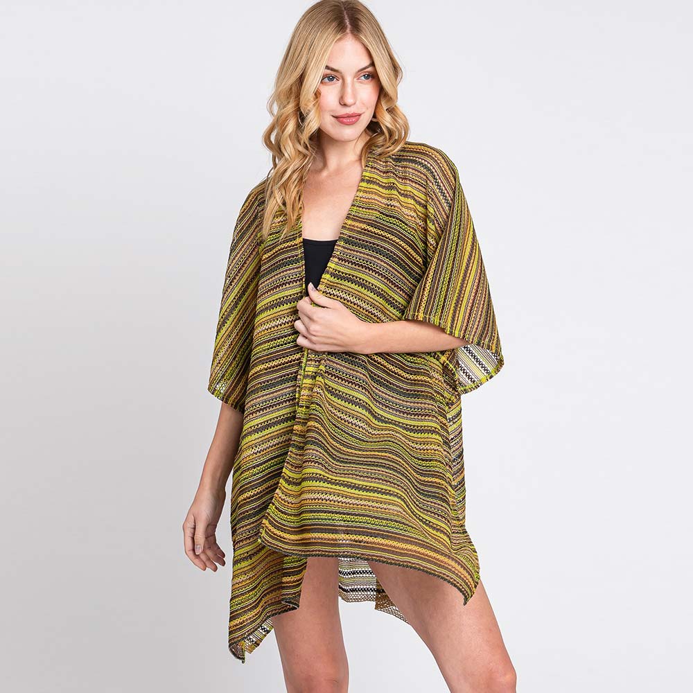 Multi Color Stripe Crochet Open Front Cover-Up Kimono Poncho
