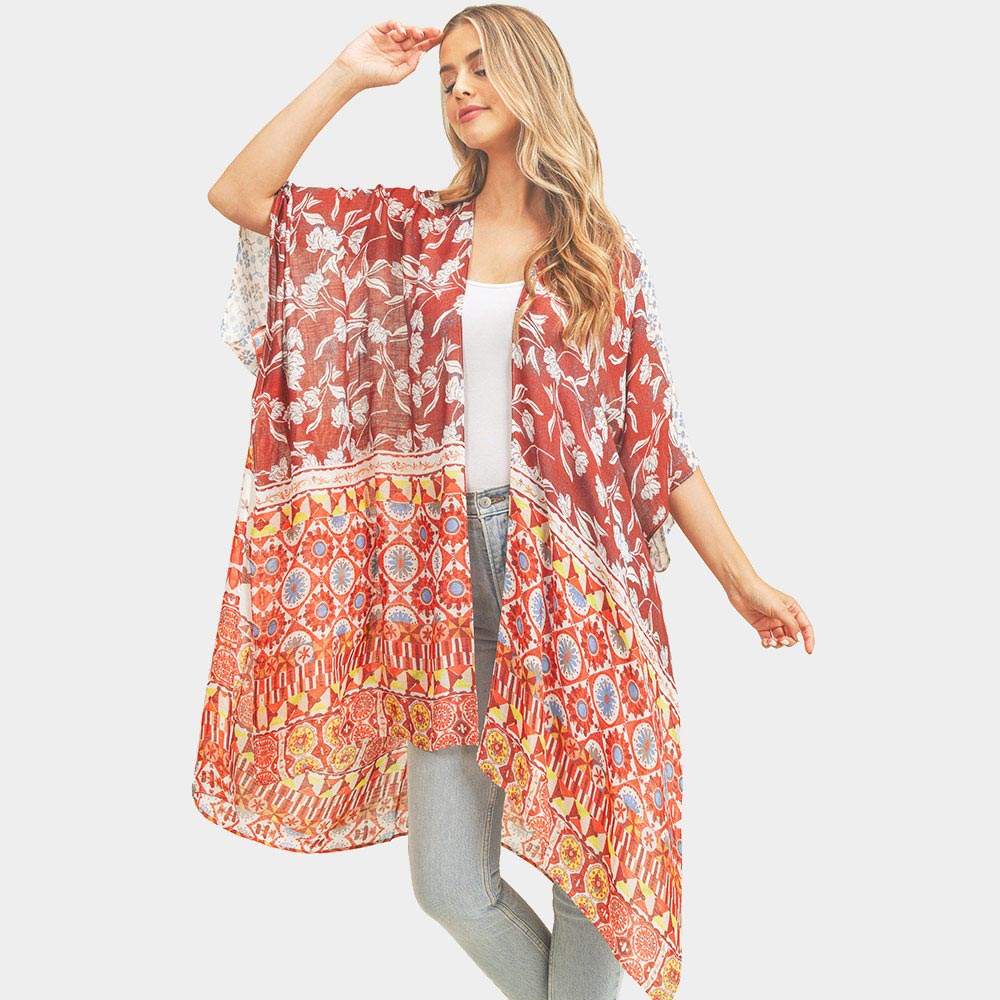 Multi Patterned Cover Up Kimono Poncho