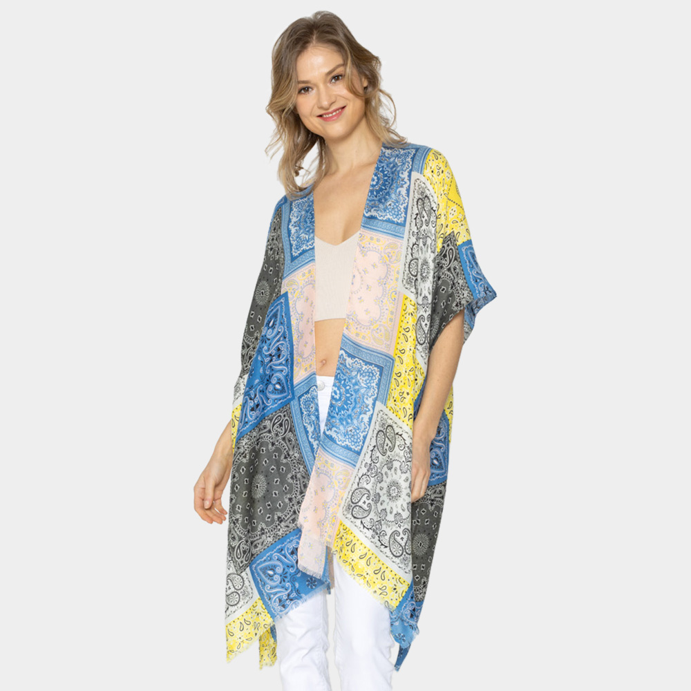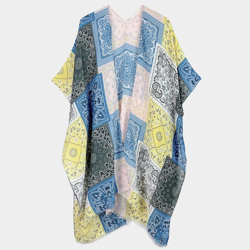 Paisley Bandana Patterned Cover Up Kimono Poncho