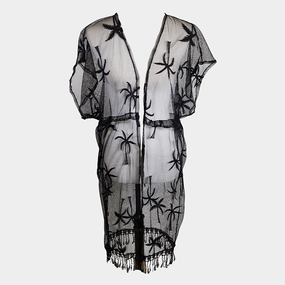 Palm Tree Accented Tassel Cover Up Kimono Poncho