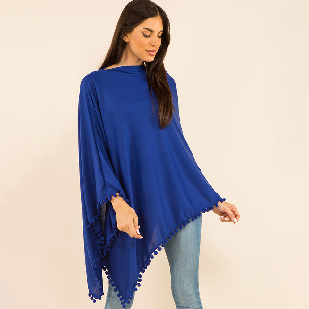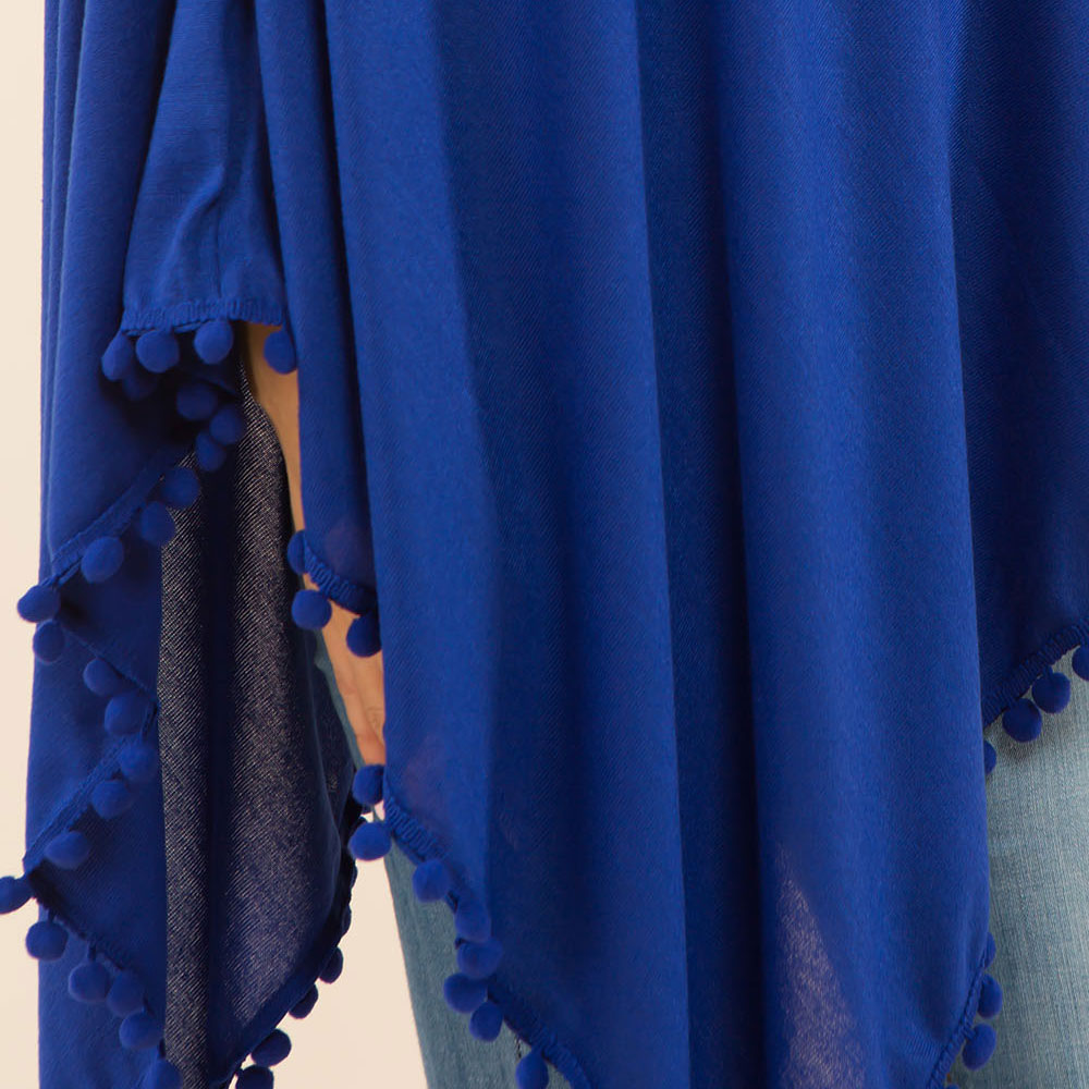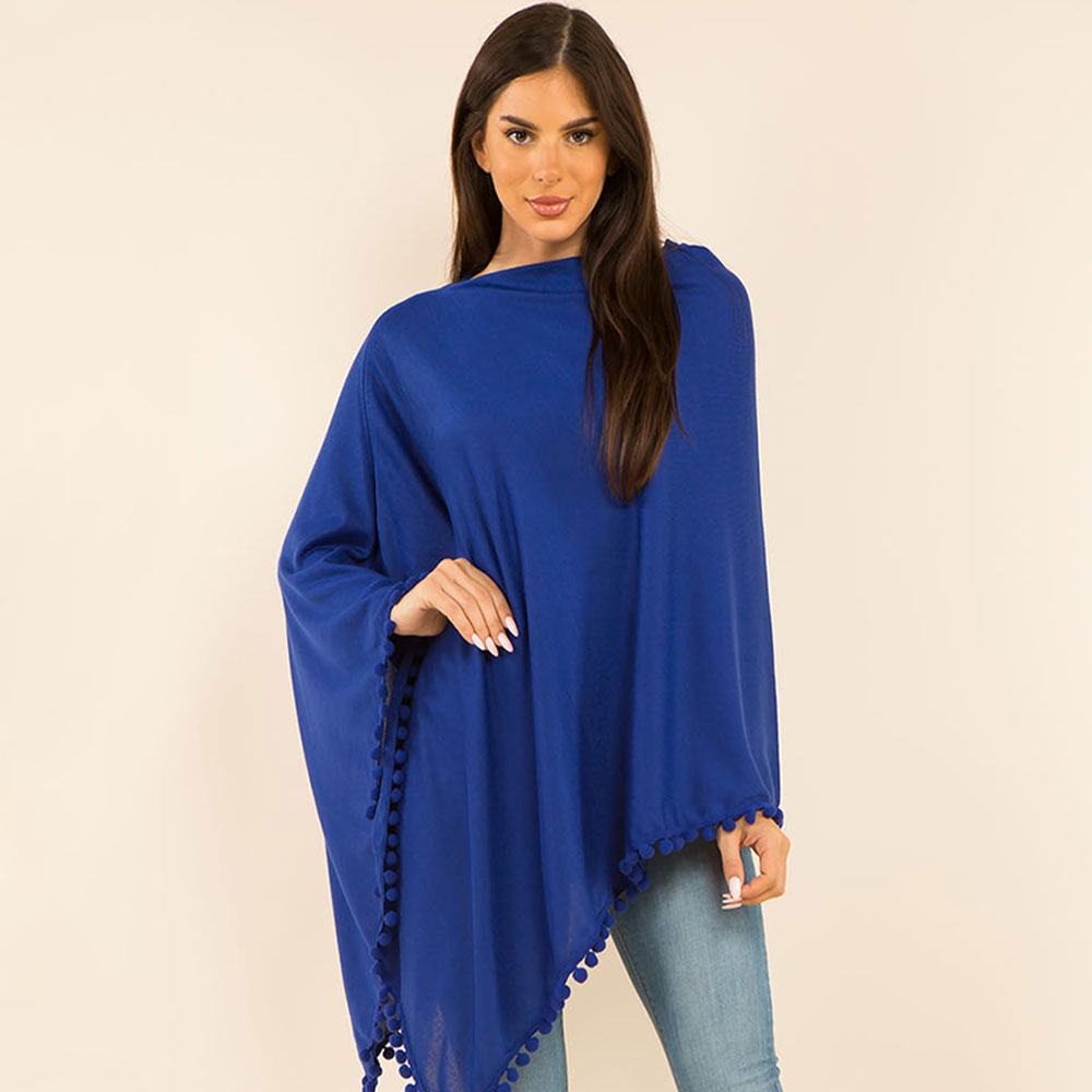 Pom Pom Trim Solid Asymmetrical Poncho Pom Pom Trim Solid Asymmetrical Poncho Pom Pom Trim Solid Asymmetrical Poncho