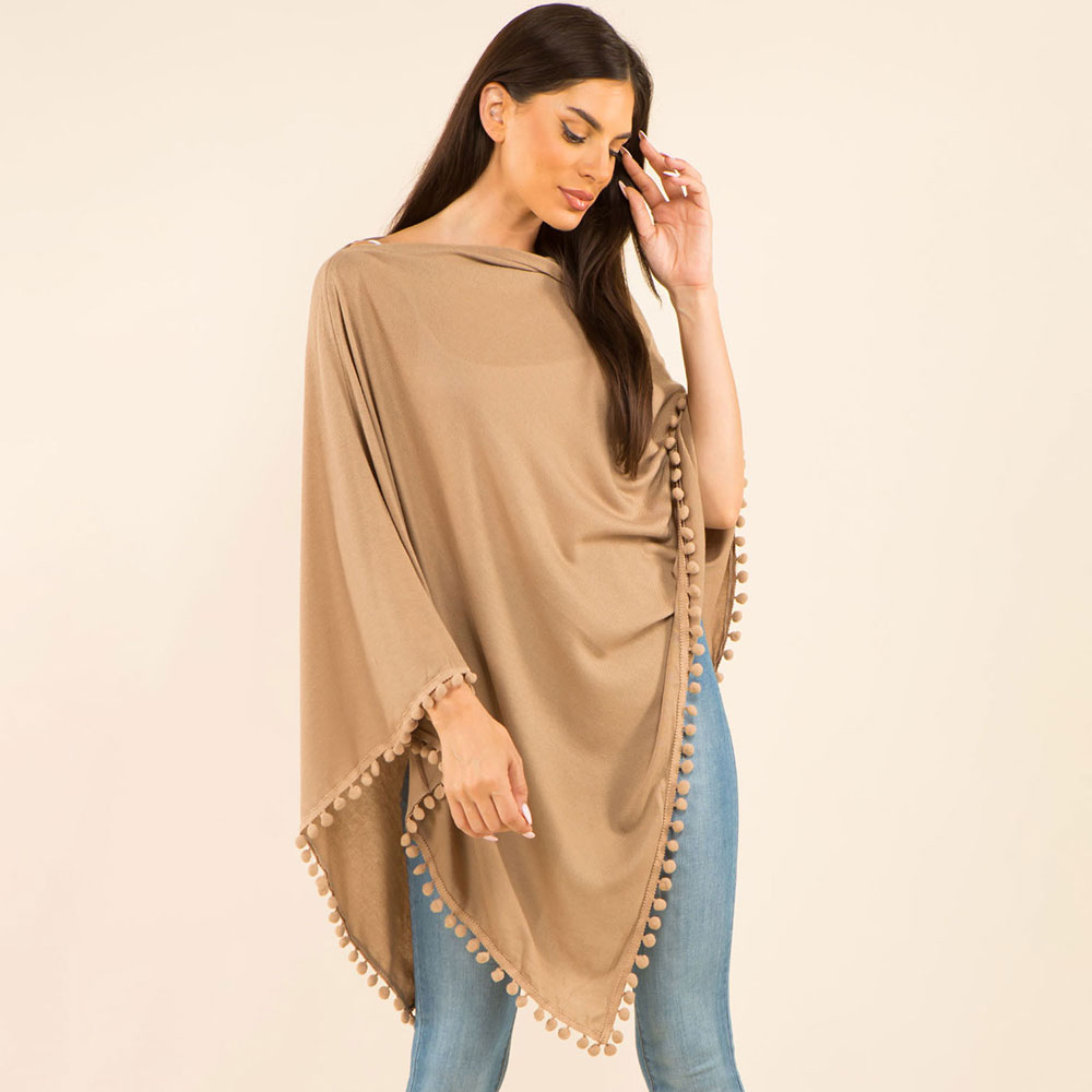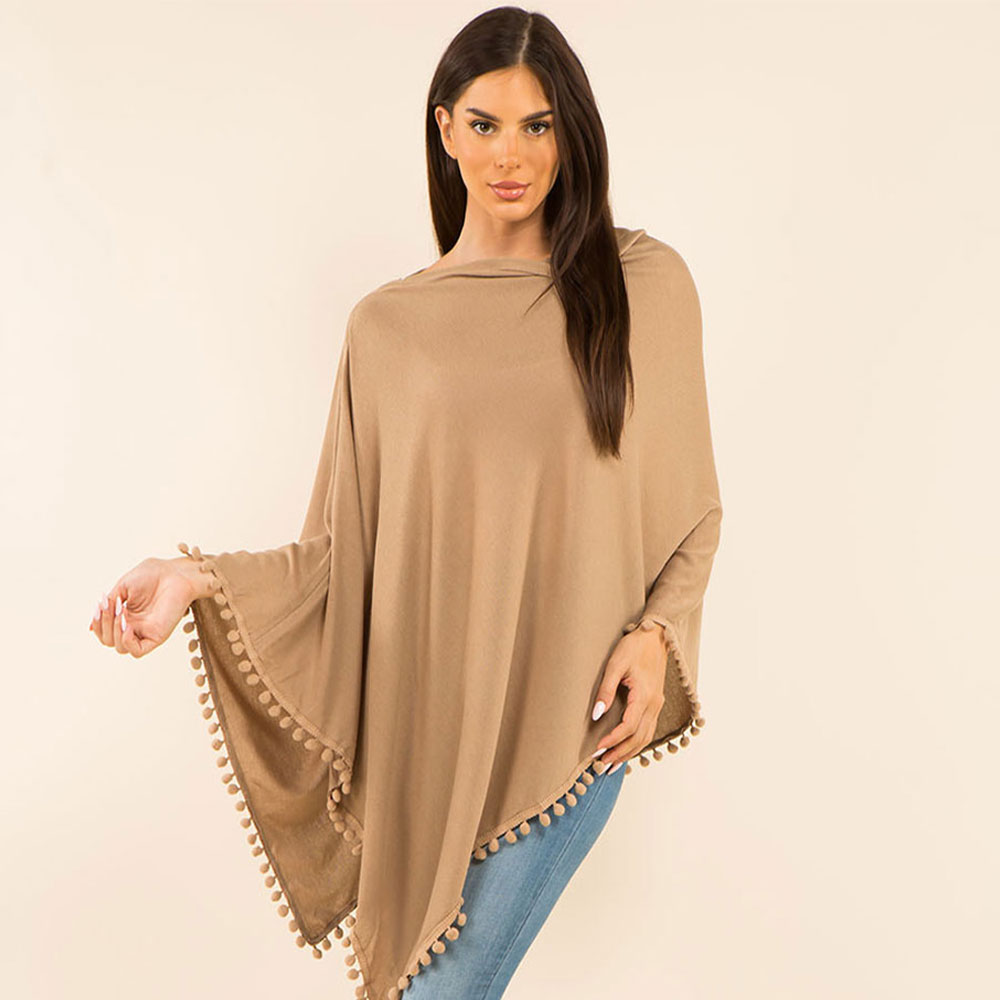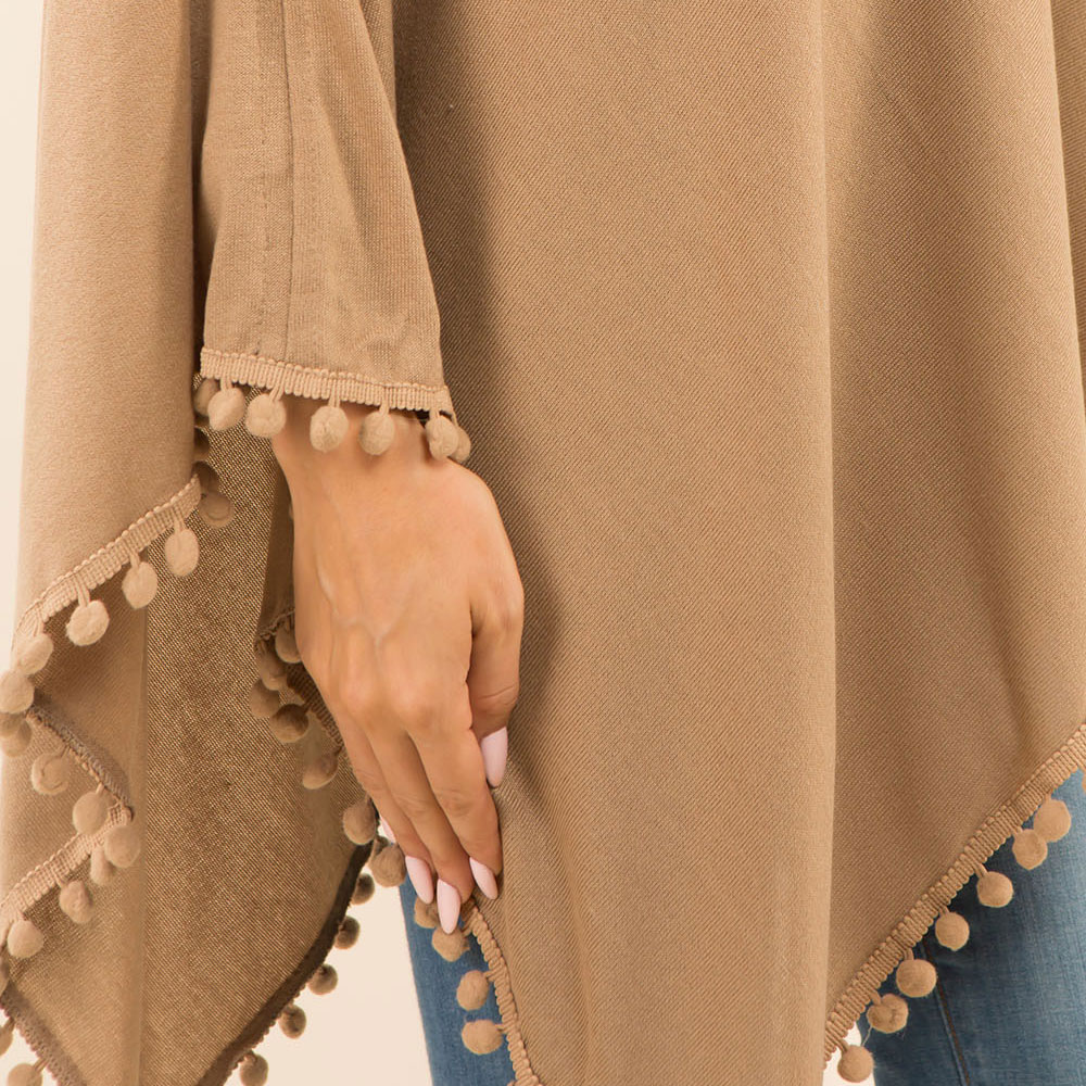 Pom Pom Trim Solid Asymmetrical Poncho Pom Pom Trim Solid Asymmetrical Poncho Pom Pom Trim Solid Asymmetrical Poncho