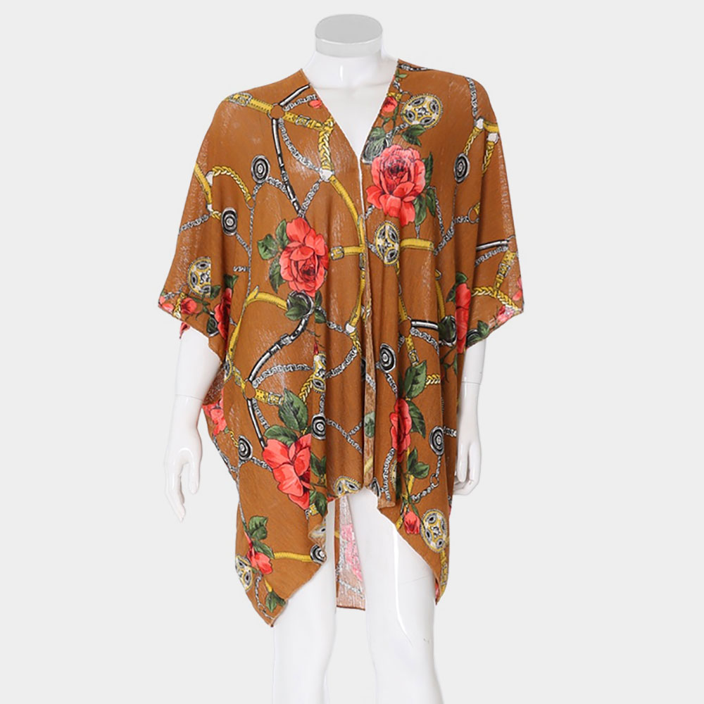 Rose Flower Chain Print Cover Up Poncho