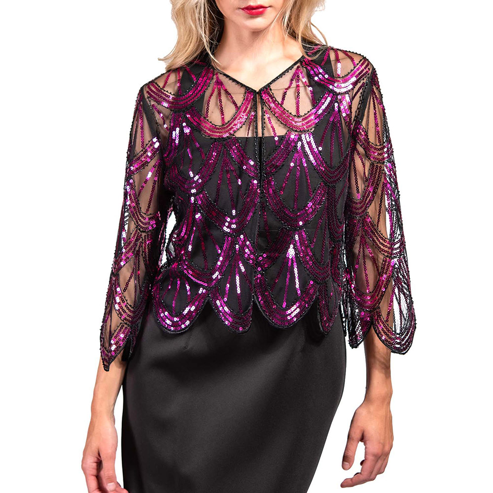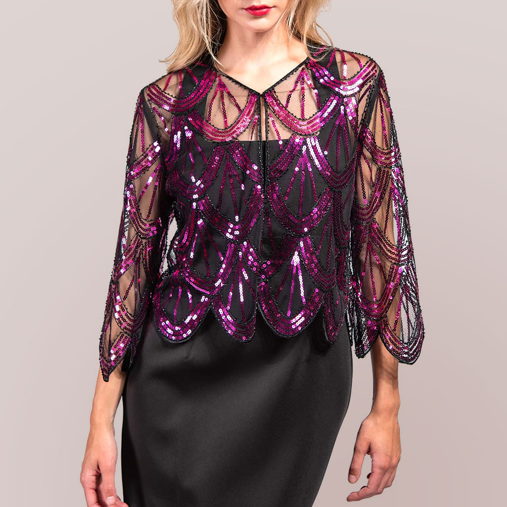 Sequin Beaded Retro Style Cropped 3/4 Sleeves Vintage Shawl Cardigan