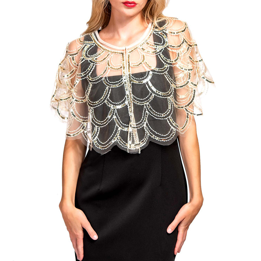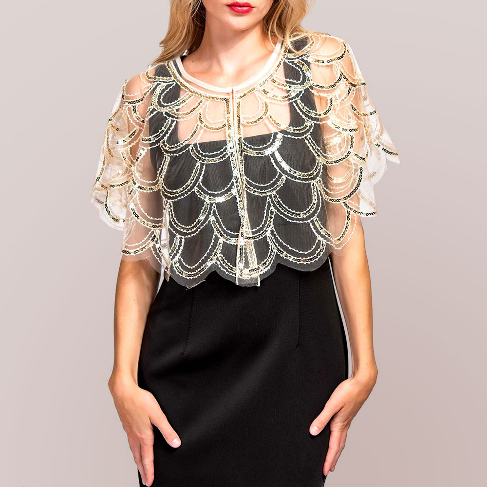Sequin Beaded Vintage Sheer Shawl Cape Poncho
