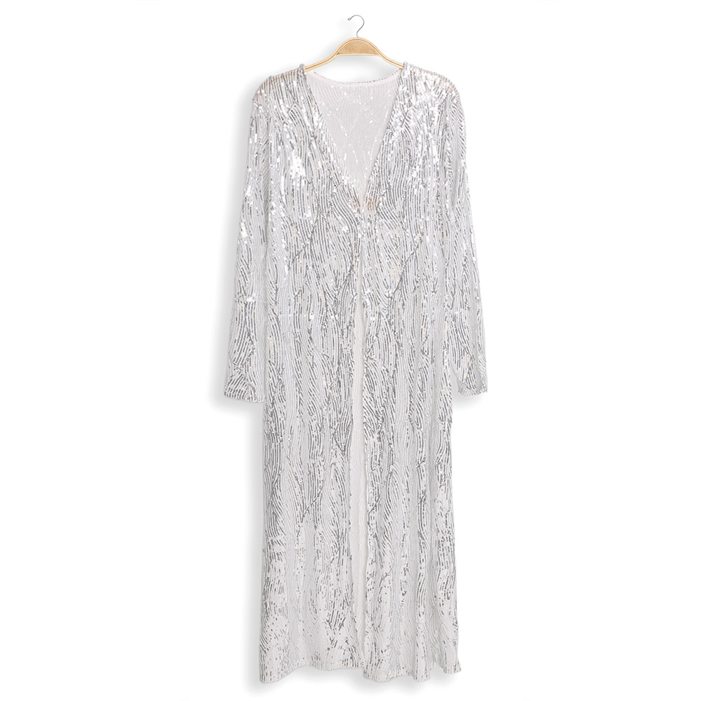 Sequin Long Cover-Up Kimono Poncho