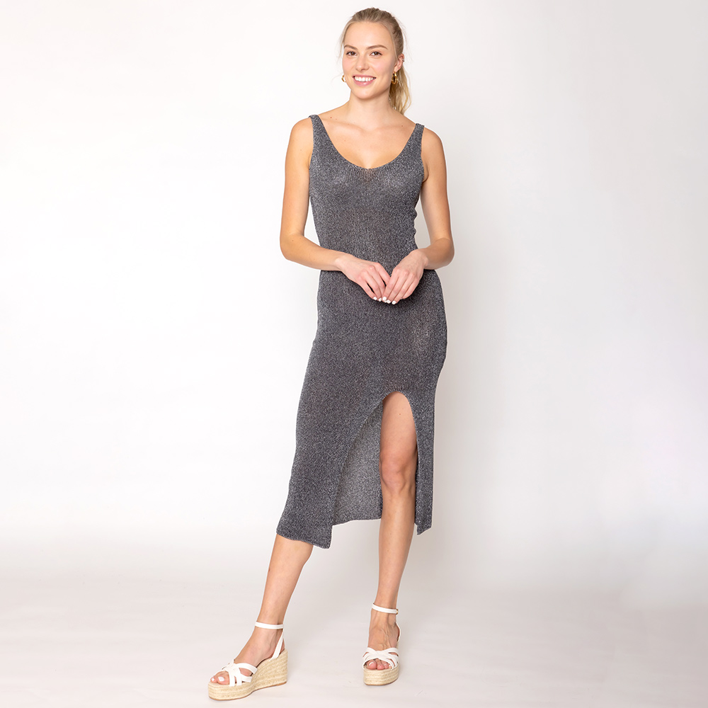 Shimmery Sleeveless V Neck Kit Midi Dress