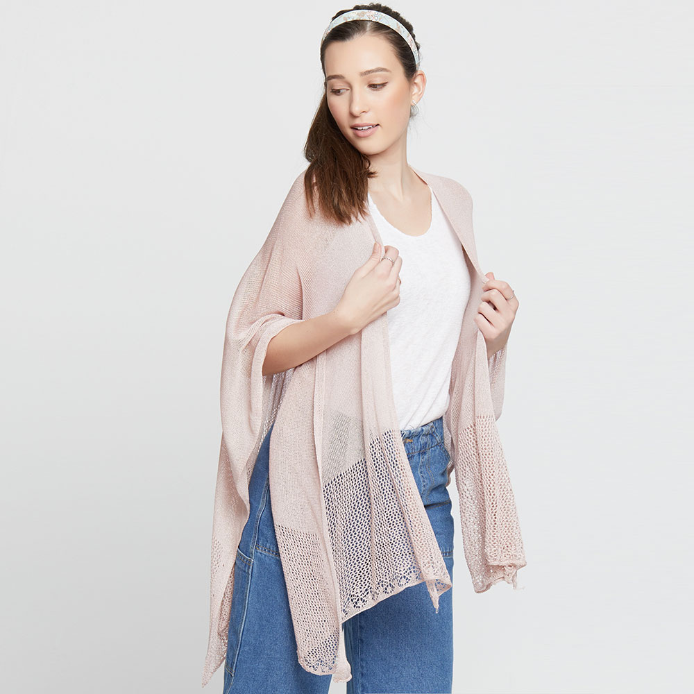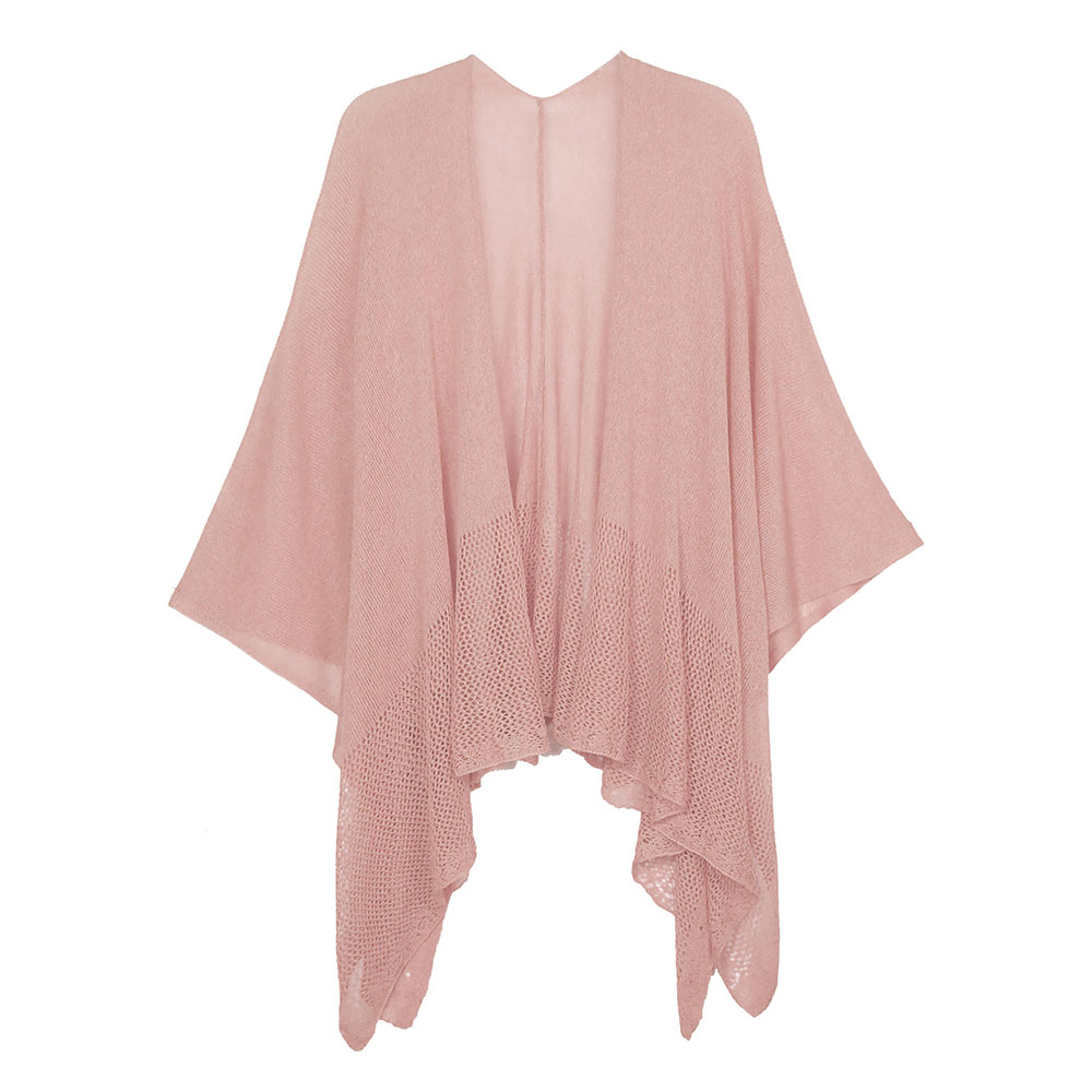 Solid Knitted Mesh Trimmed Ruana Poncho