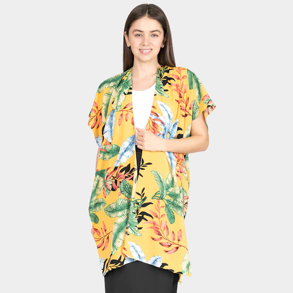 Tropical Leaf Patterned Lace Cover Up Kimono Poncho