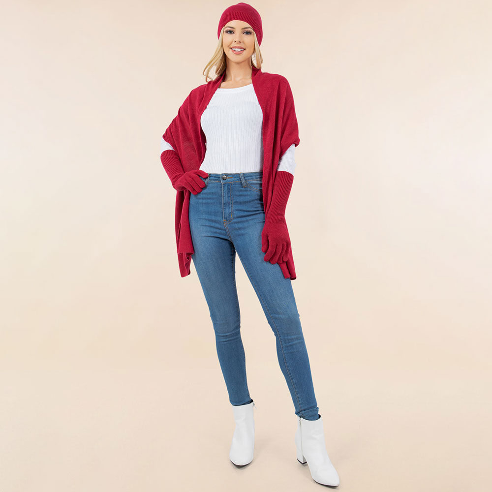 3PCS - Solid Winter Beanie Hat Scarf Gloves Set