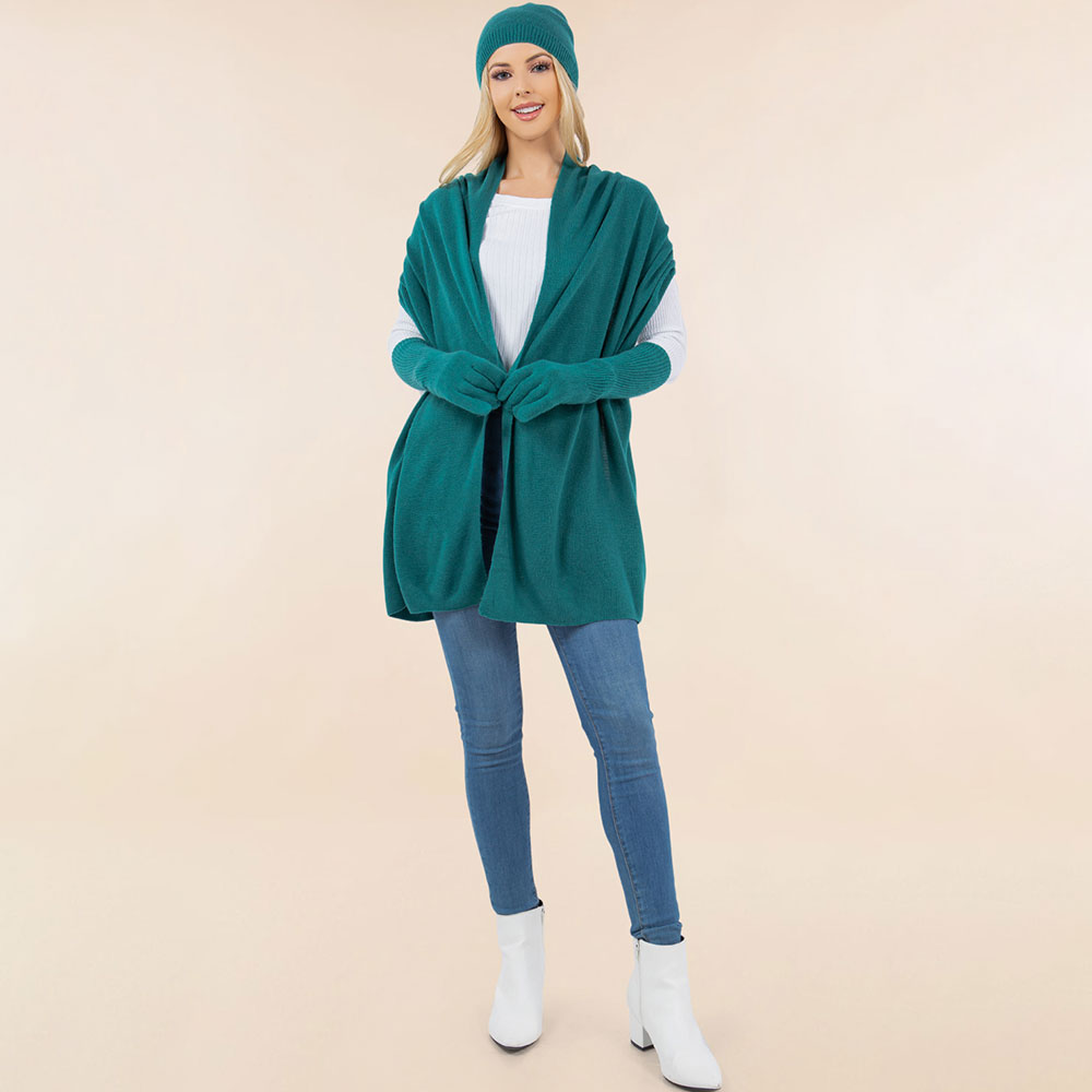 3PCS - Solid Winter Beanie Hat Scarf Gloves Set