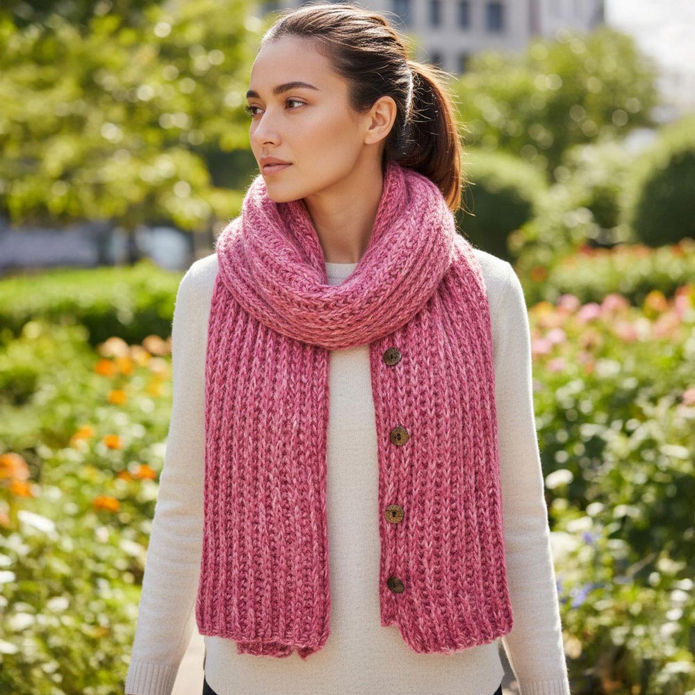Details • Size : 25" X 82" • Fabric : Acrylic • A versatile knit wrap with functional buttons that allow multiple styling options. Wear it as a draped layer, a cozy scarf, or a relaxed poncho. Designed for effortless transitions and everyday comfort.