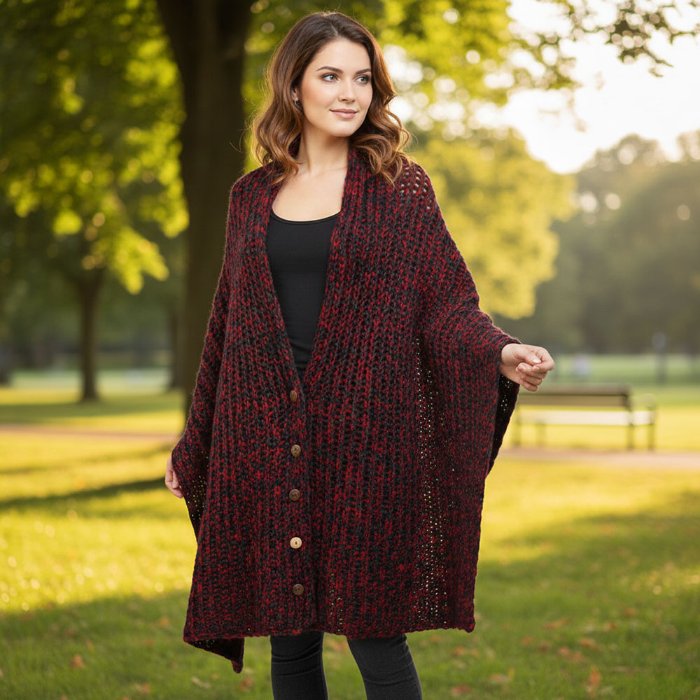 Details • Size : 25" X 82" • Fabric : Acrylic • A versatile knit wrap with functional buttons that allow multiple styling options. Wear it as a draped layer, a cozy scarf, or a relaxed poncho. Designed for effortless transitions and everyday comfort.