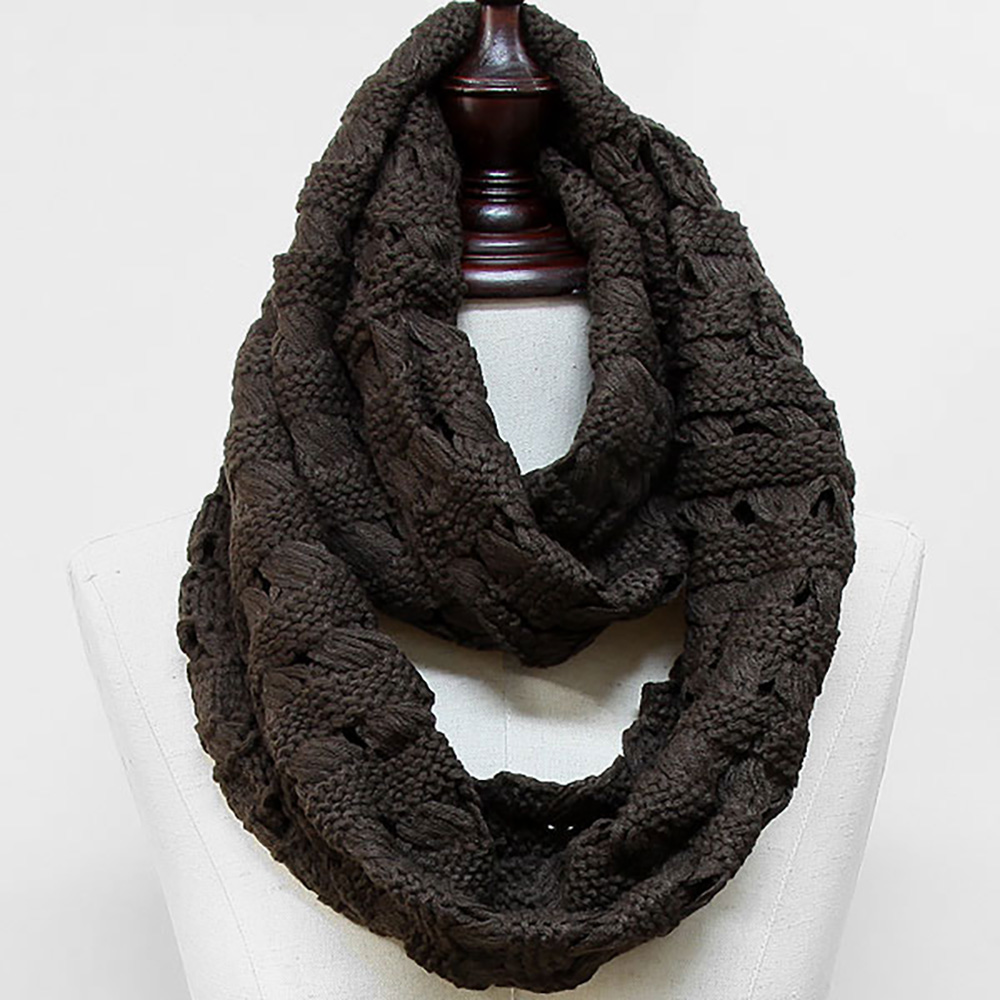 Details • Size : 13" X 42" • Material : 100% Acrylic • Add warmth and texture to your look with this chunky cable knit infinity scarf. Its soft, looped design offers effortless layering and cozy coverage, perfect for pairing with everyday outfits or elevating your cold-weather wardrobe with timeless style.