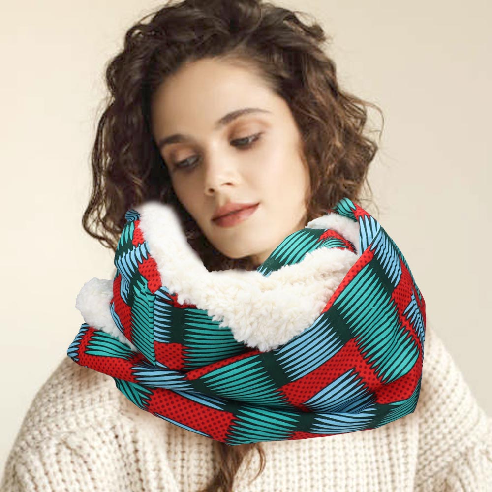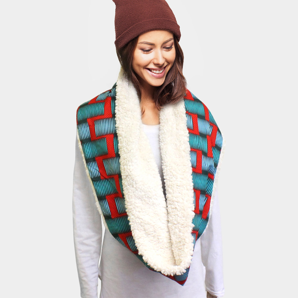 Colorful Pattern Soft Sherpa Infinity Scarf