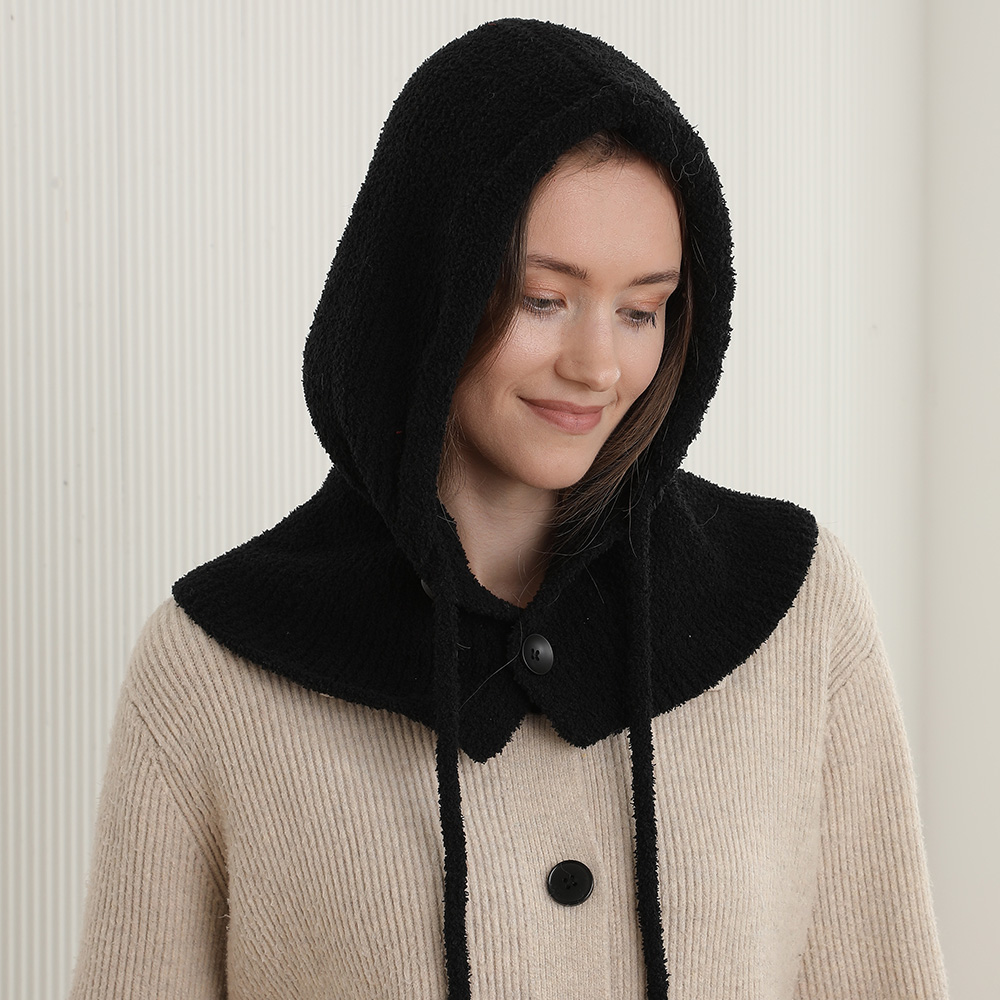 Cozy Drawstring Hooded Knit Scarf Hat Cozy Drawstring Hooded Knit Scarf Hat