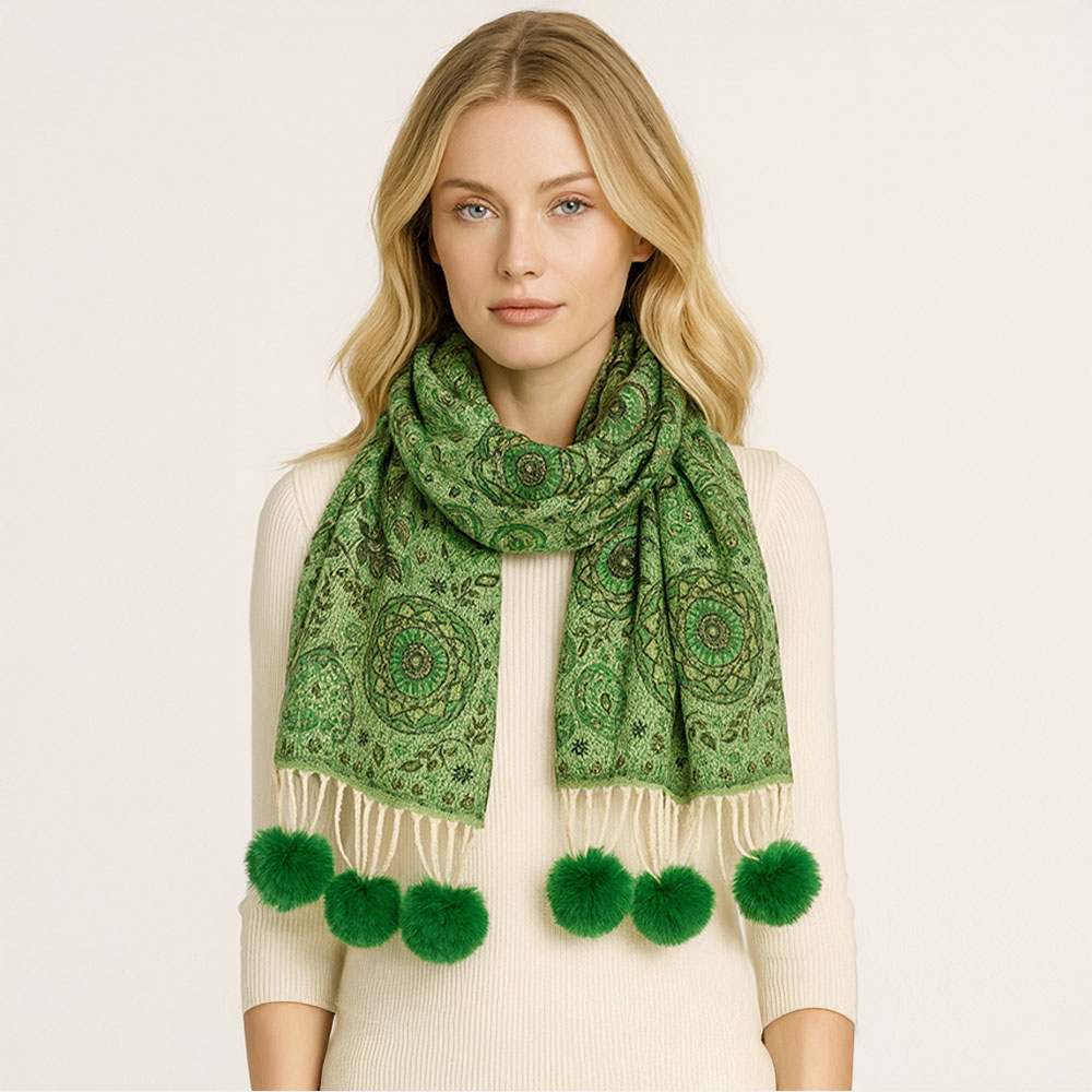 Elegant Patterned Pom Tassel Accent Winter Scarf