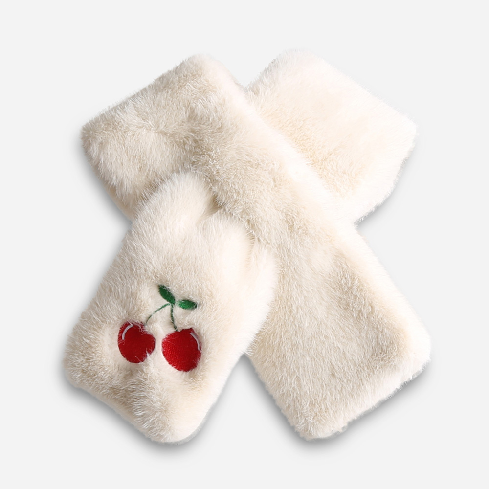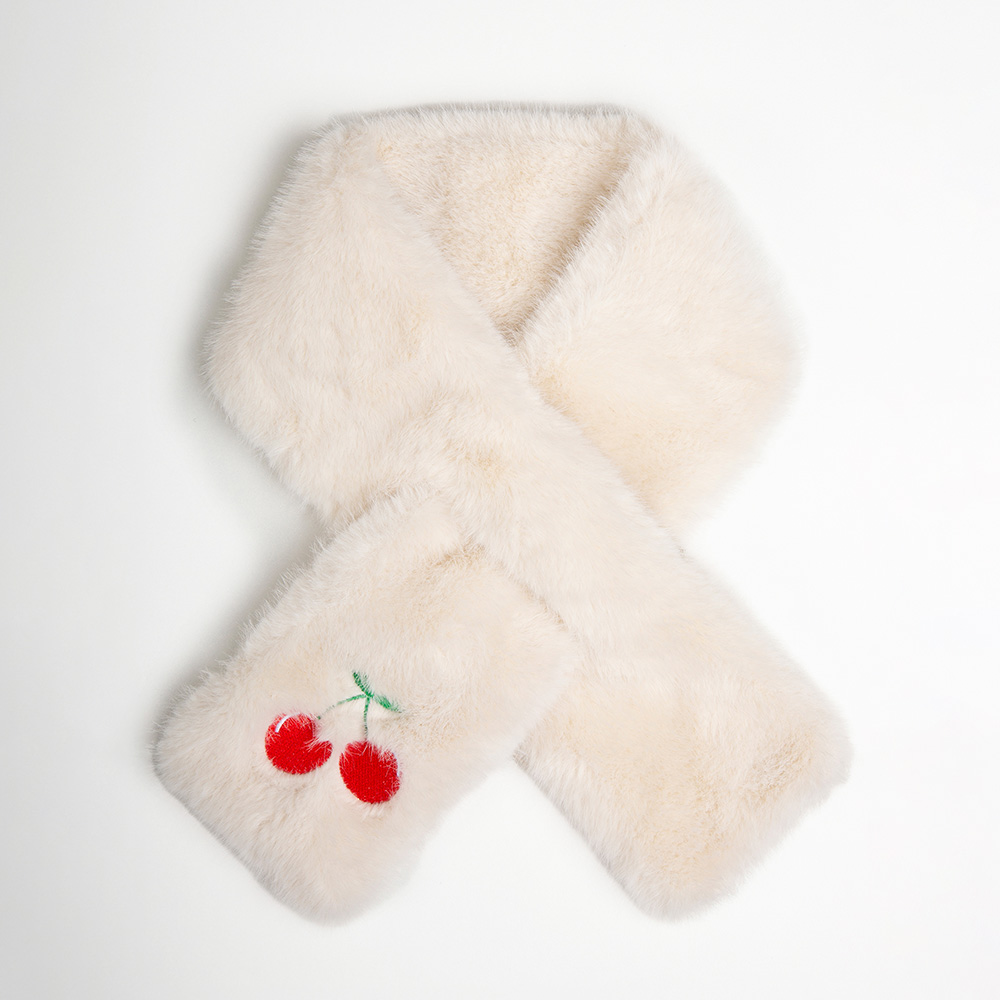 • Cherry Embroidered Faux Fur Scarf – Soft, cozy winter scarf with charming cherry detail. Adds playful elegance to your cold-weather look while keeping you warm and stylish. Perfect for festive outfits or everyday wear.