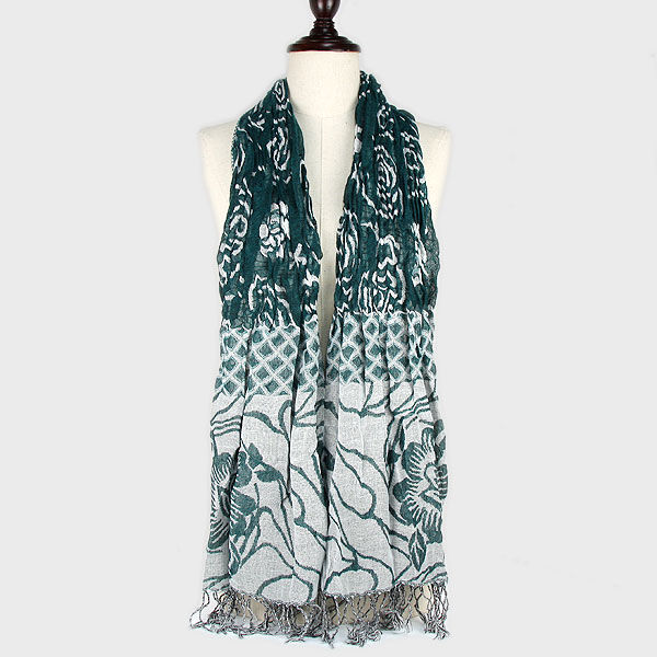 Flower Print Polyester Fringe Scarf