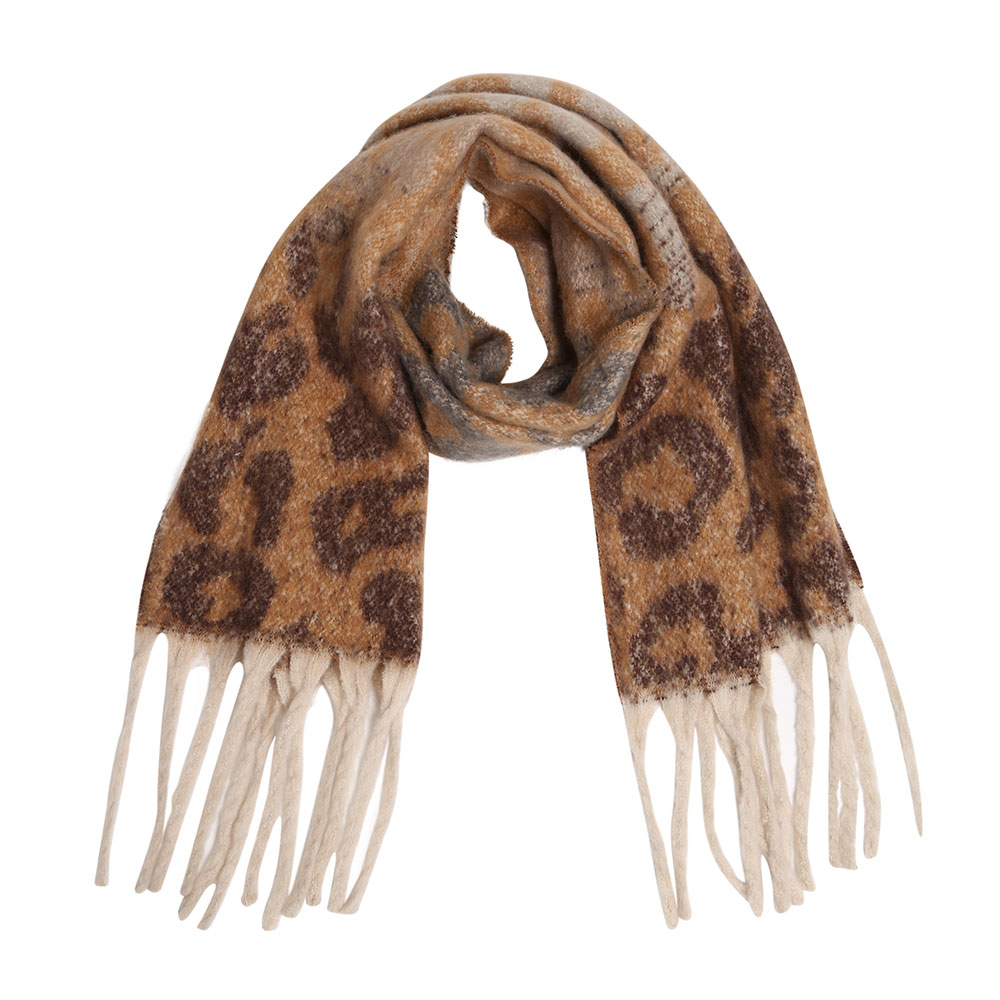 Leopard Print Oversized Fringe Chunky Oblong Scarf