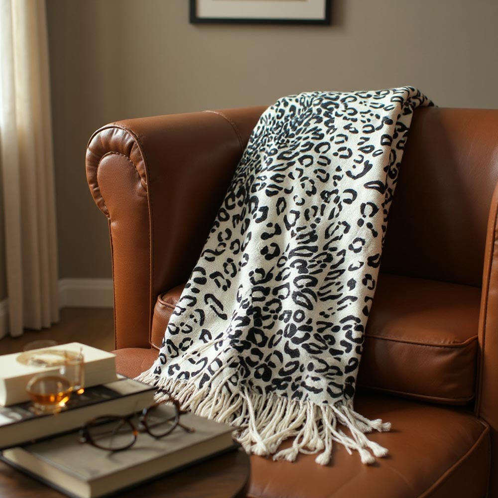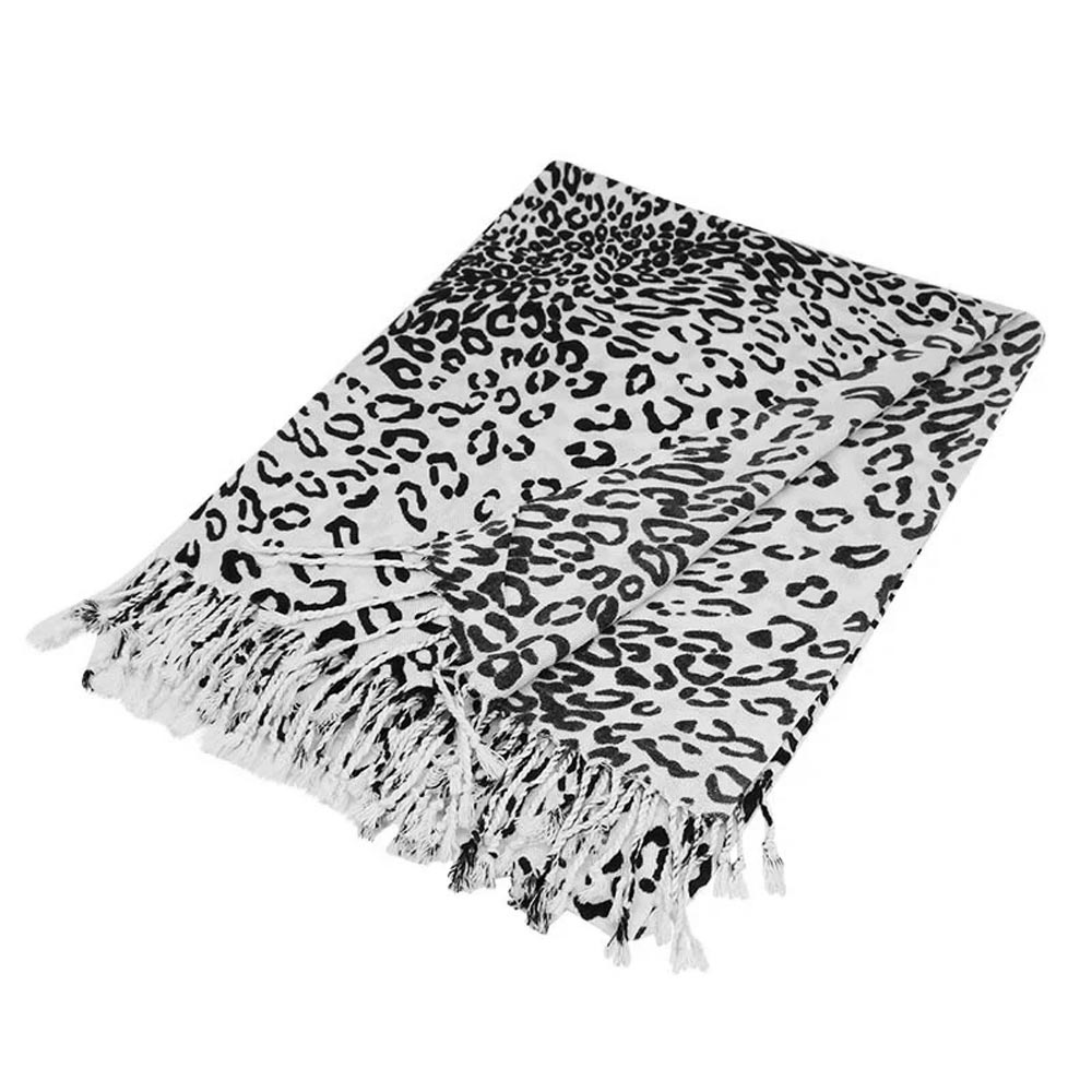 Details • Size : 28" X 78" • Material : 100% Acrylic • Leopard print fringed scarf designed for versatile styling and comfort. Lightweight yet cozy, this animal print wrap adds a bold accent to casual or dressy looks, perfect for layering in any season. Finished with tassel edges for added texture and effortless chic appeal.
