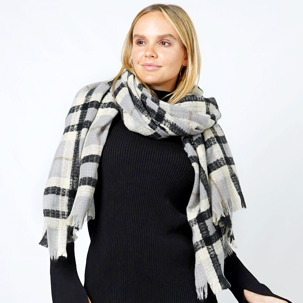 Plaid Lurex Oblong Scarf / Shawl