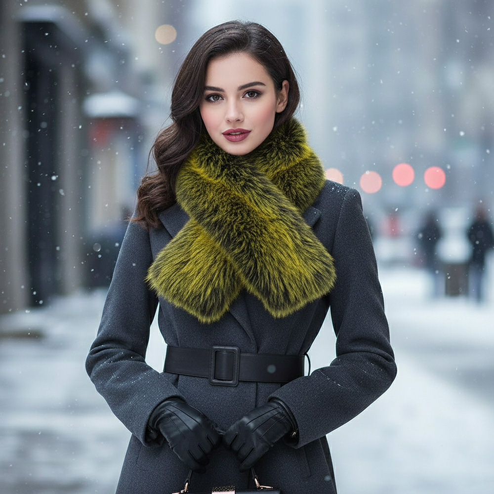 • Stay cozy and stylish with this plush faux fur winter scarf featuring a luxurious texture and bold, eye-catching design. Perfect for cold-weather outfits, it adds warmth and elegance to any ensemble, making it a must-have accessory for chic winter fashion.