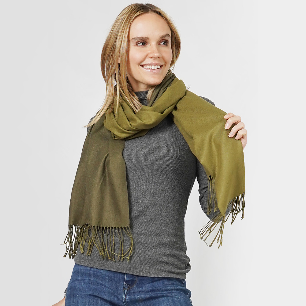 • Elegant two-tone winter scarf with delicate tassel edges, offering warmth and style for chilly days. A versatile accessory perfect for layering and complementing a variety of seasonal outfits.