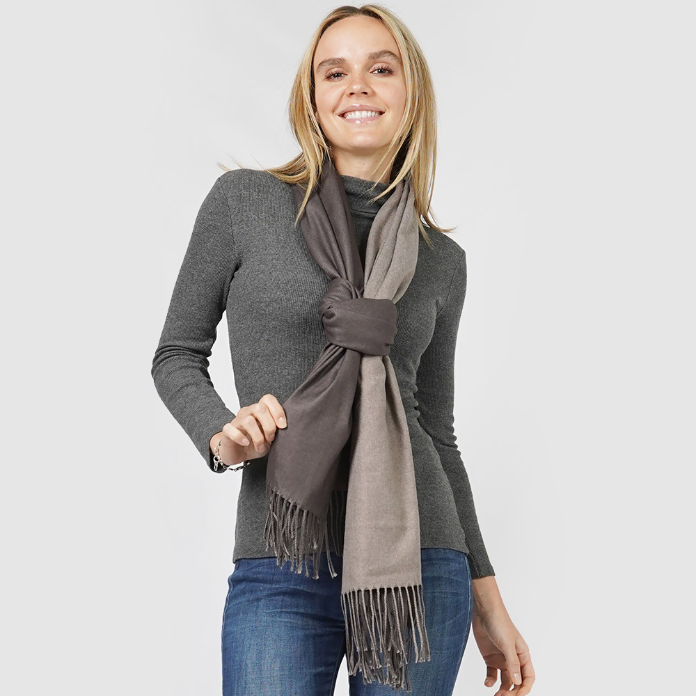 • Elegant two-tone winter scarf with delicate tassel edges, offering warmth and style for chilly days. A versatile accessory perfect for layering and complementing a variety of seasonal outfits.