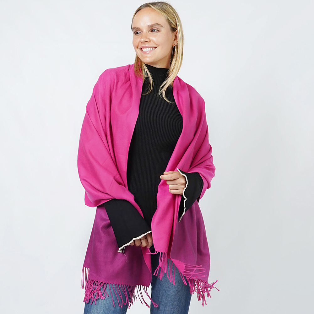 • Elegant two-tone winter scarf with delicate tassel edges, offering warmth and style for chilly days. A versatile accessory perfect for layering and complementing a variety of seasonal outfits.