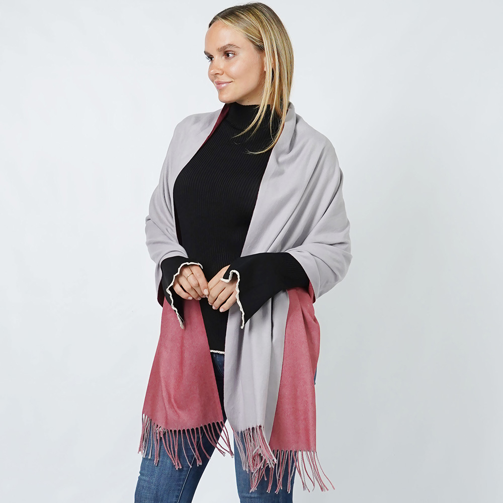 • Elegant two-tone winter scarf with delicate tassel edges, offering warmth and style for chilly days. A versatile accessory perfect for layering and complementing a variety of seasonal outfits.