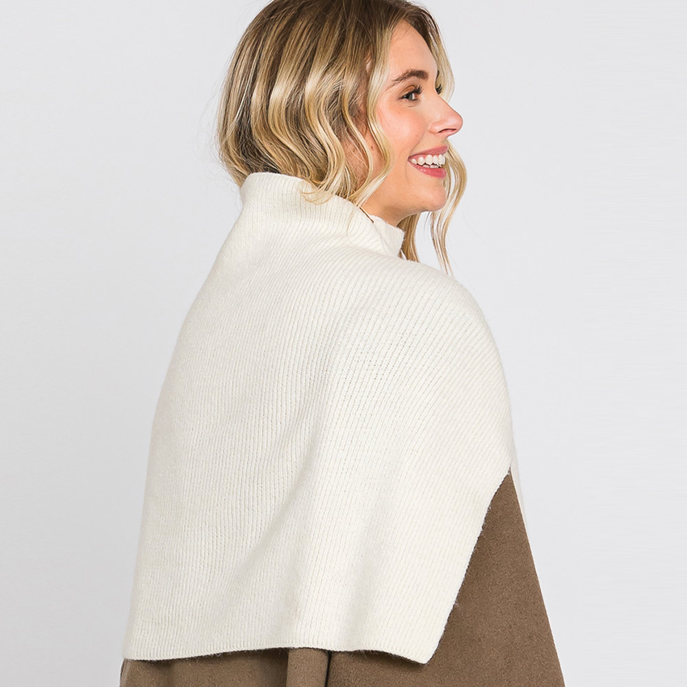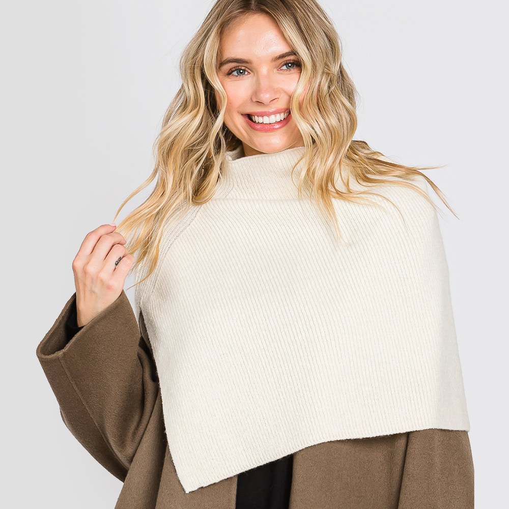• Chic asymmetrical knit turtleneck shoulder wrap offering cozy warmth and modern elegance. Perfect for layering over coats or sweaters, this stylish piece adds texture and sophistication to your outfit, making it an effortless statement accessory for cool-weather looks.
