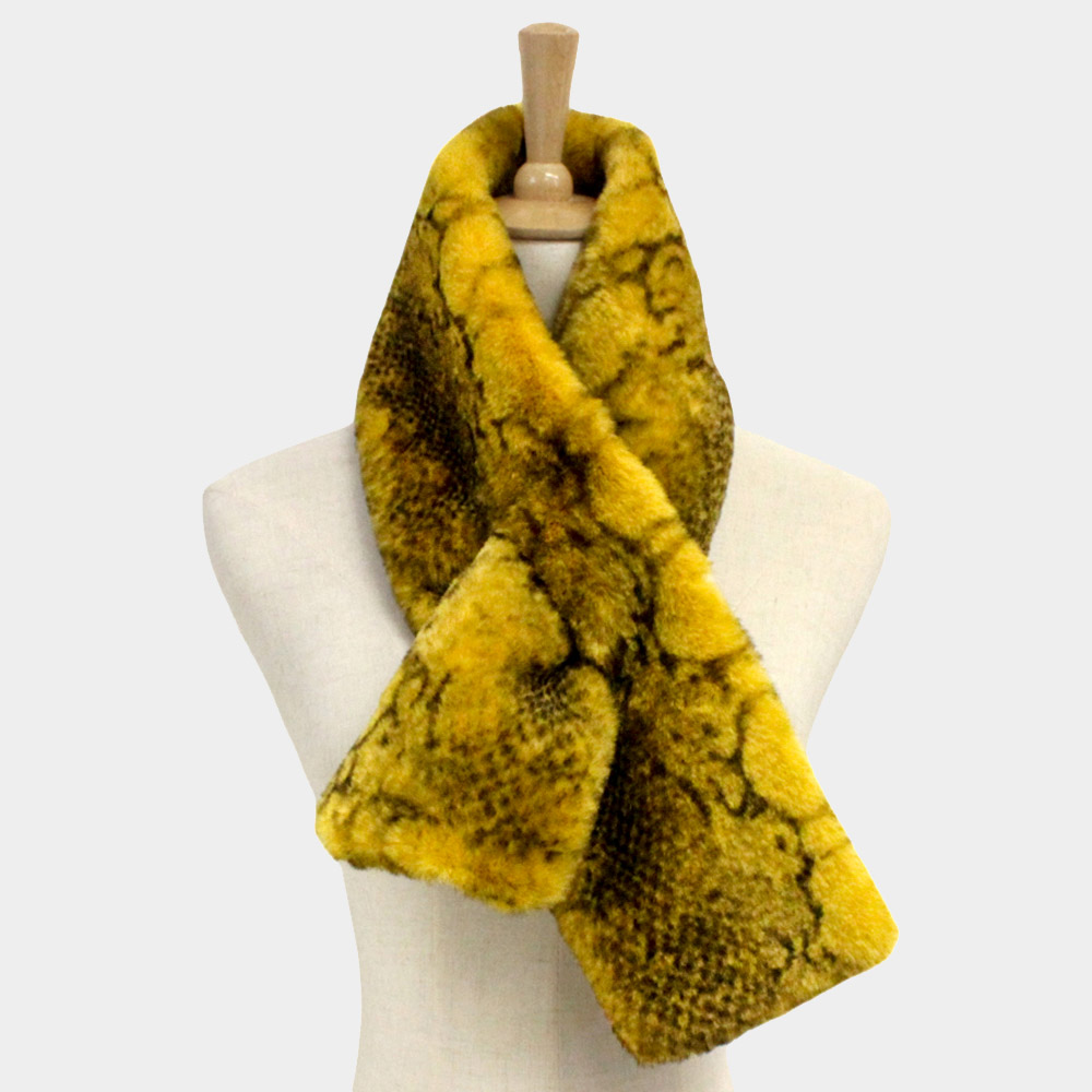 Snake Skin Patterned Faux Fur Pull Through Scarf Snake Skin Patterned Faux Fur Pull Through Scarf