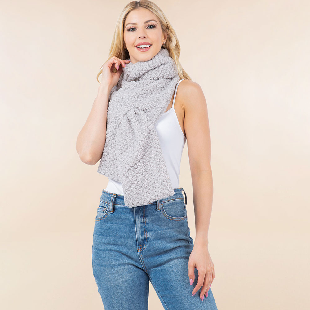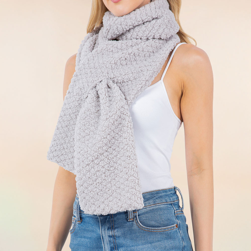 • Wrap yourself in warmth with this ultra-soft sherpa scarf. Designed for chilly weather, its plush texture and oversized fit make it a cozy essential for any winter outfit. Stylish, practical, and perfect for layering.
