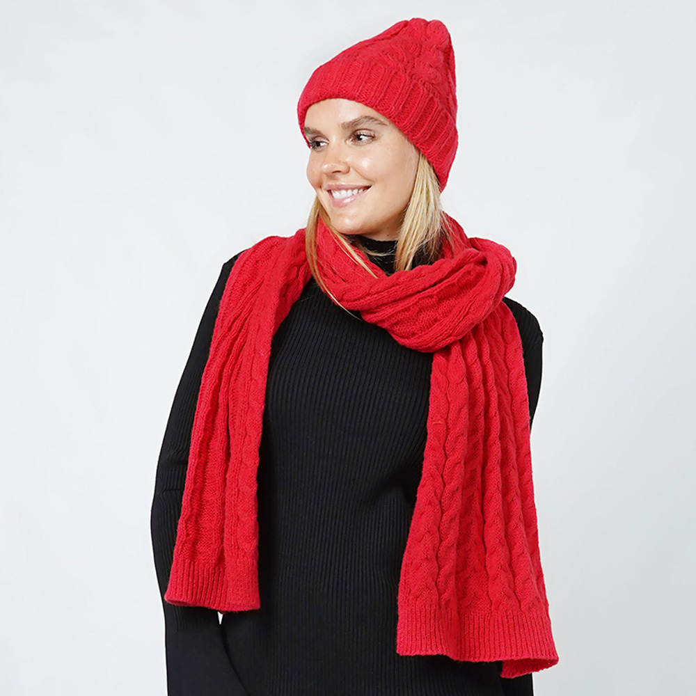 • Stay warm with this cable knit scarf and matching hat set designed for both comfort and style. Perfect for everyday wear, casual outings, or travel, this cozy winter accessory set adds timeless charm and soft warmth to your cold-weather wardrobe.