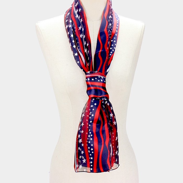 6PCS - Satin Striped American Flag Pattern Print Scarf