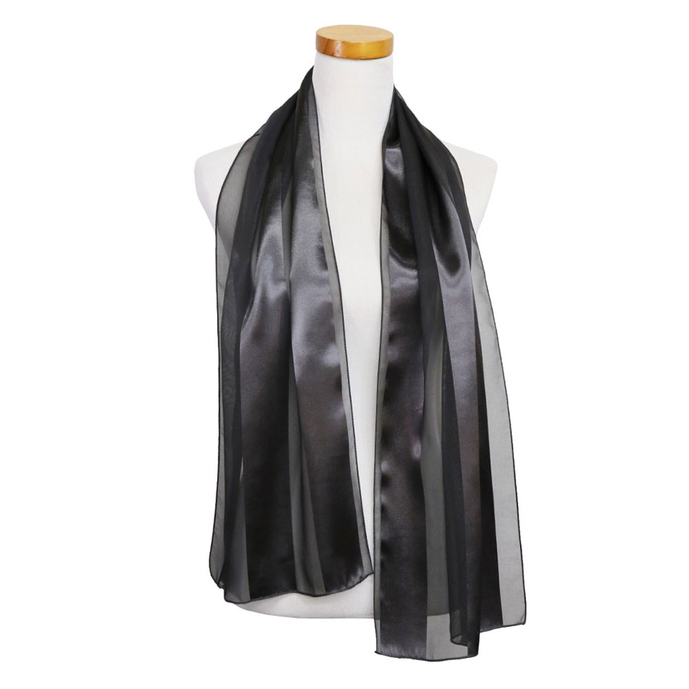 • Add elegance to any outfit with this sheer satin striped scarf. Lightweight and versatile, this 13x60 accessory can be worn as a neck wrap, shawl, or headscarf—perfect for events, casual wear, or layering year-round.