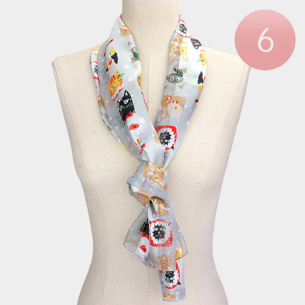 6PCS - Silk Feel Christmas Cute Animal Pattern Print Scarf