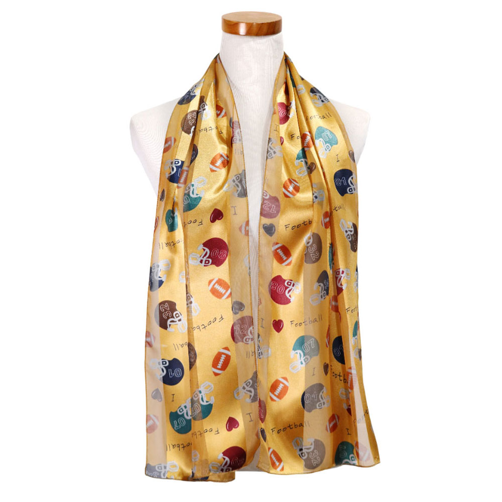 Details • Size : 13" X 60" • Material : 100% Polyester • Show off your football spirit with this sporty scarf featuring helmets, footballs, and playful “I Love Football” graphics. A vibrant and lightweight accessory that’s perfect for sports lovers, game day outfits, or unique gifts for football fans and coaches alike. Great as a neck or head wrap.