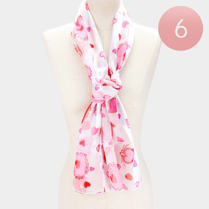 6PCS - Silk Feel Satin Striped Heart Pattern Print Scarf