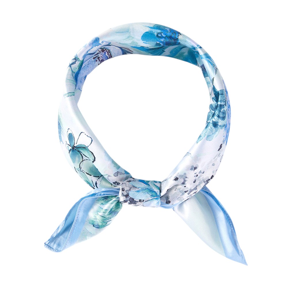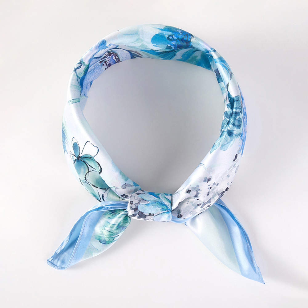 Blush Lavender Watercolor Floral Printed Square Silky Satin Scarf