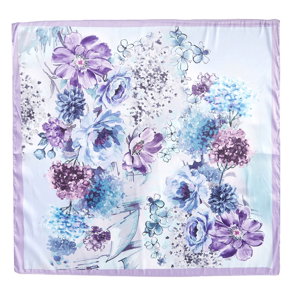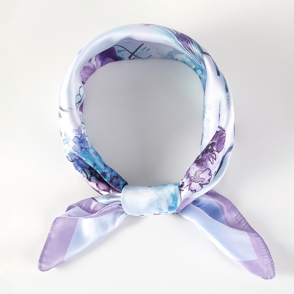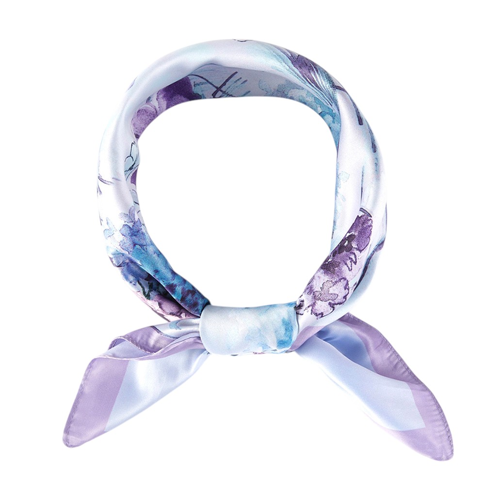 Blush Lavender Watercolor Floral Printed Square Silky Satin Scarf