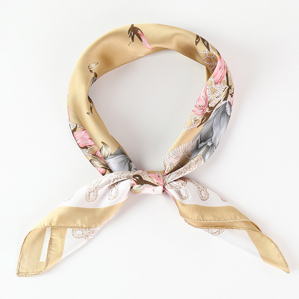 Classy Floral Printed Square Silky Satin Bandana Scarf