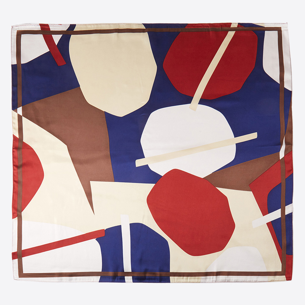 Geometric Pattern Printed Square Silky Satin Bandana Scarf
