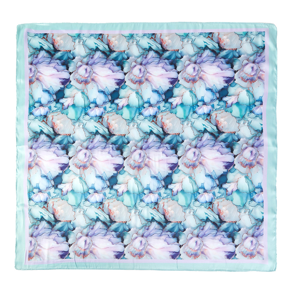 Muted Watercolor Peony Printed Square Silky Satin Scarf