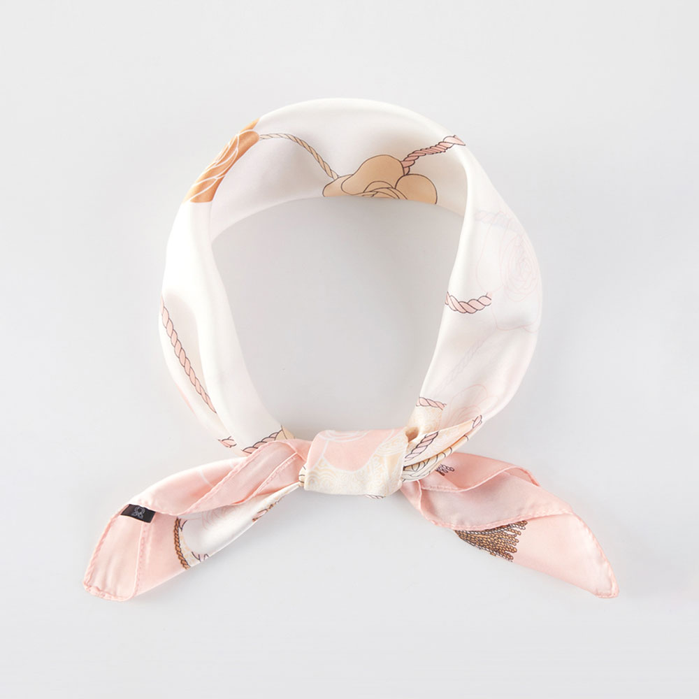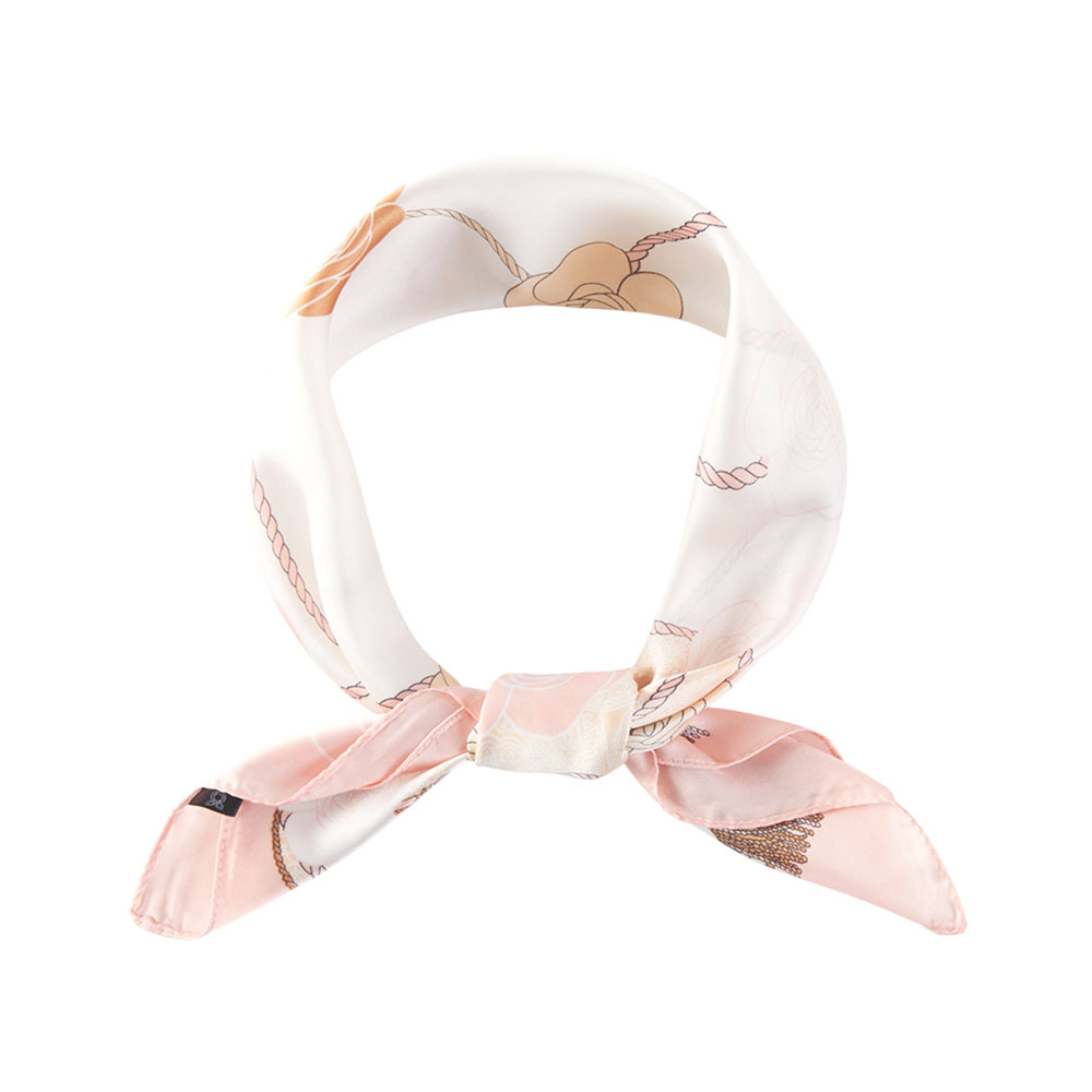 Details • Size : 27.5" X 27.5" • Material : 100% Polyester • Capture a chic, preppy look with this charming square satin-feel scarf. The unique design features stylized roses connected by an intertwined rope pattern, framed by a decorative tassel border and subtle paisley elements. The smooth, luxurious fabric and vibrant, balanced colors make this accessory a delightful statement piece for a classic, sophisticated style. Perfect as a neckerchief or tied to a handbag.